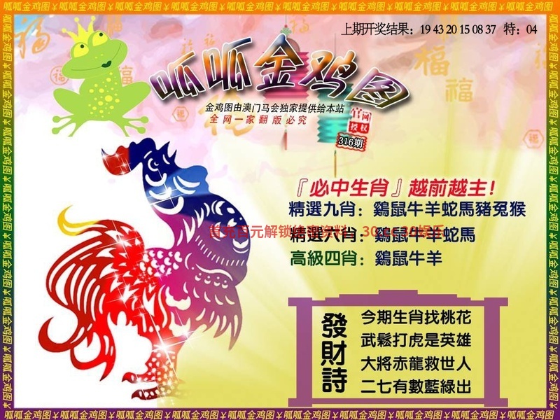 | 317期:必中六肖【龙马狗猴鸡羊】开:發00准 |